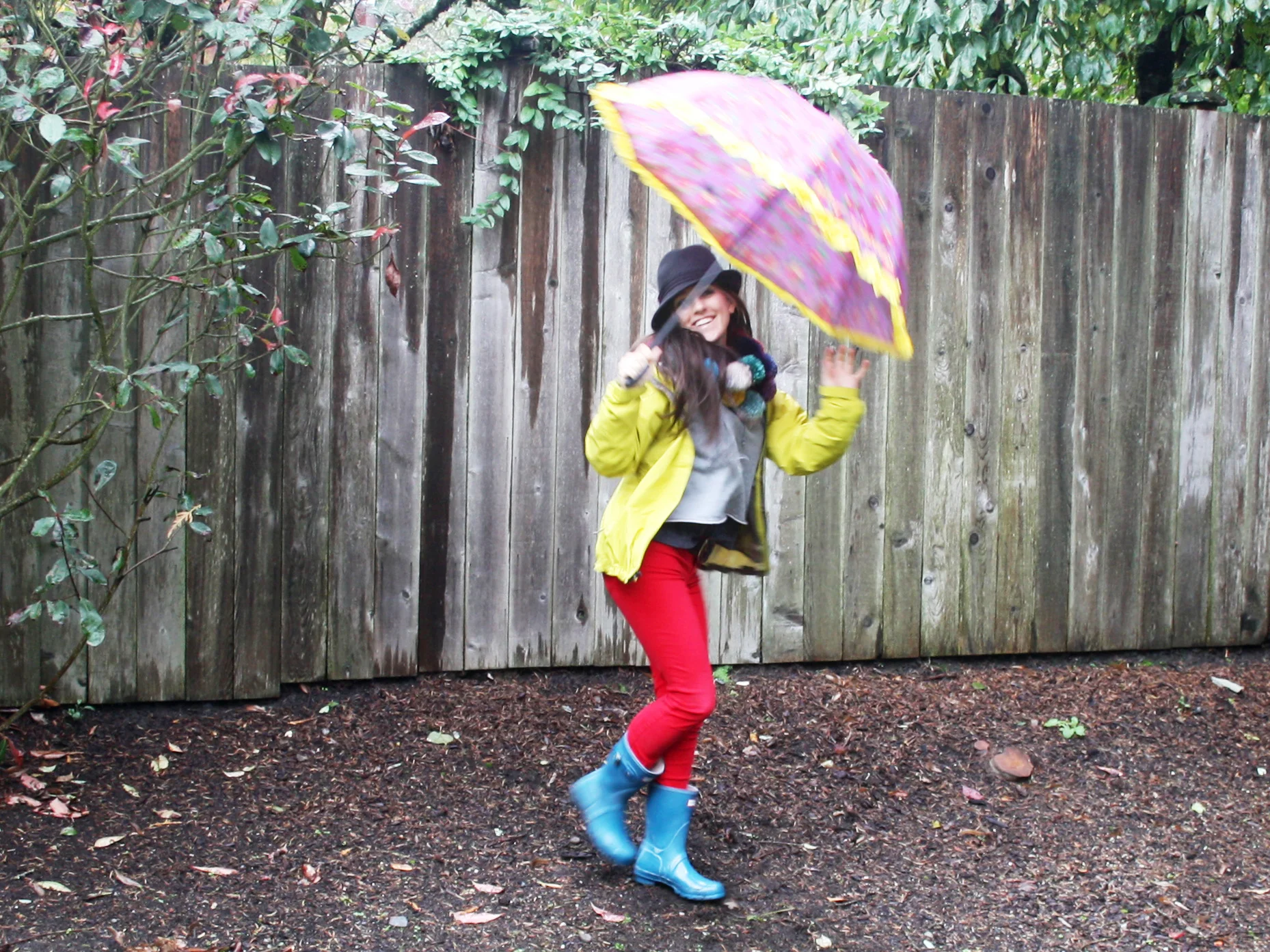 Para que veáis, así es como a veces (o casi siempre) se me ocurre vestirme en un día gris y de lluvia aquí en Seattle.