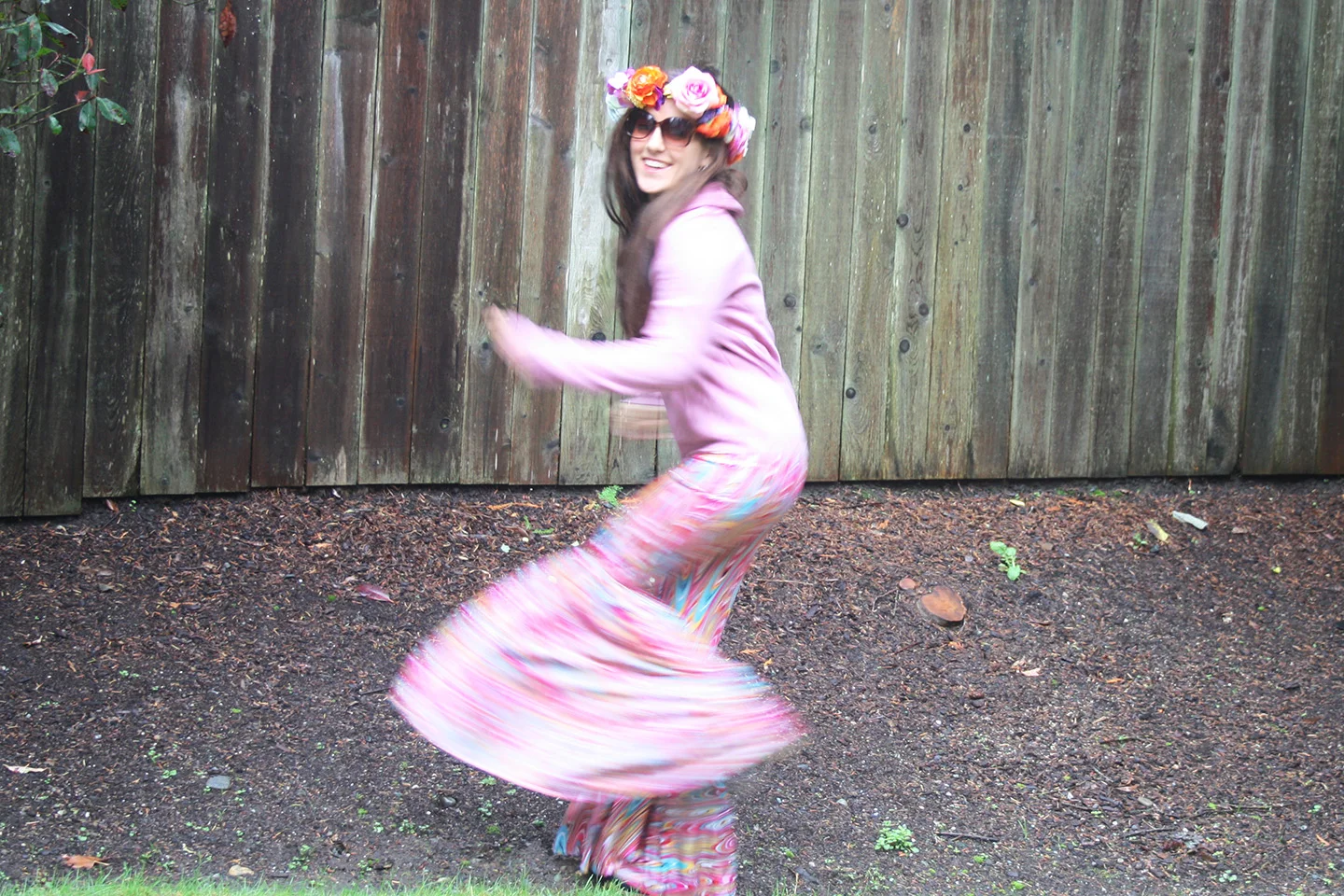 Yo quería ir cómoda y de algo que me identificara de algún modo. La gente me decía: I like it, but... what is your costume? Creo que no supe responder sus preguntas, pero los pantalones al estilo '80 definitivamente llamaban la atención y decidí ponerme la corona de flores que hice hace un año.